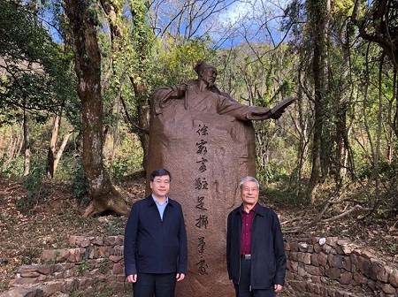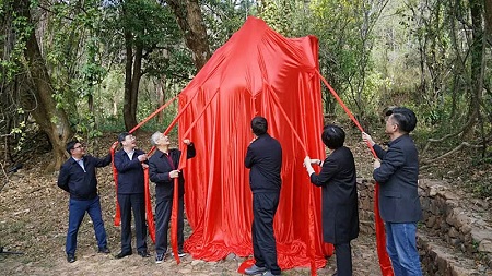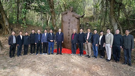 活动期间,与会嘉宾还参加了中国文化名山鸡足山“徐霞客驻足掷笔处”纪念铜像的揭幕仪式。这是人教社对振兴宾川县旅游文化产业的又一帮扶举措。2018年底,为了帮助宾川文化和优势农产品品牌走出宾川、走向全国,人教社邀请著名作家梁衡前往宾川讲学,同时请他深入调研宾川县域县情、文化物产。梁衡先生连续撰写了两篇文章《徐霞客的丛林》《花果飘香的宾川》,分别发表在《人民日报》《北京文学》上,随后被《新华文摘》收录。他首先提议,在中国文化经典《徐霞客游记》的终篇之地鸡足山立碑“徐霞客驻足掷笔处”作为永久的地标纪念。经过多次磋商和周密的考察,人教社决定捐资,帮助宾川县在鸡足山景区树立了《徐霞客驻足掷笔处》纪念铜像。这处新景点,有望成为传播鸡足山历史文化和宾川旅游形象的又一重要名片,为宾川的文旅产业振兴产生积极的影响。