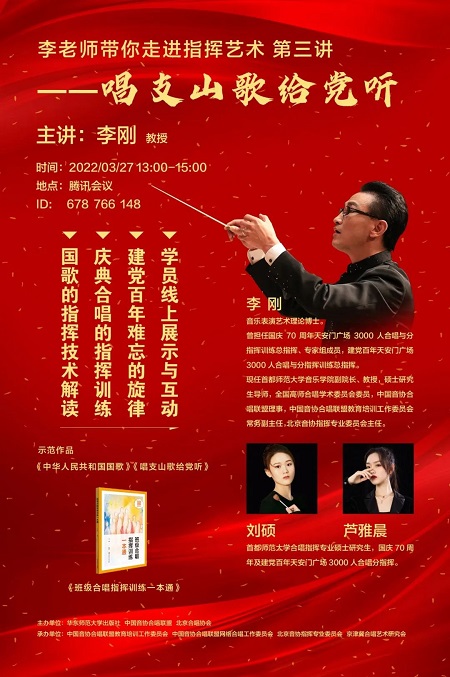 在日常合唱活动中,庆典类合唱歌曲与国歌的排练与指挥最为常见,但也是许多学校合唱团与业余合唱团指挥最需要专业指挥家指导、点拨的歌曲类型。作为国庆70周年与建党百年天安门广场3000人合唱与分指挥训练总指挥,李刚教授将针对国歌的指挥技术解读与庆典合唱的指挥训练进行详细讲解。