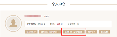 2、手机端:关注“人大社教师服务”服务号,在底部功能栏点击会员中心——登录,登录成功,在会员中心点击自助积分(活动转发)模块进入上传截图。