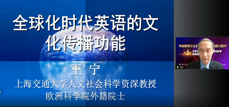 上海交通大学人文学院王宁教授论述了全球化时代英语的文化传播功能,指出全球化对文化的影响在很大程度上是通过语言为媒介实现的。文化全球化一方面造成现当代中国文化部分地西化,但另一方面也使得中国文化可以借助全球化的平台走向世界。因此,王宁教授认为,在当下借助英语这一强势媒介来讲好中国故事,让世人更加了解中国和中国文化,是非常有意义的,也是势在必行的。