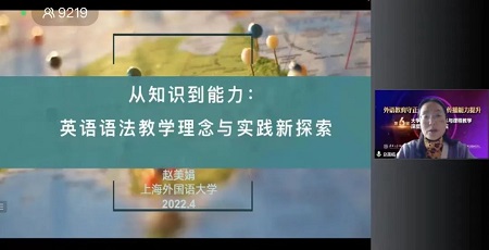 上海外国语大学赵美娟教授以《新综合大学英语》中语法板块的设计为例,探讨了如何在大学英语教学中提升学生语法技能。赵美娟教授基于对语法知识和语法能力的讨论,提出了对语法教学的再认识,并辅以具体的语法教学设计,阐述了当前大学英语语法教学三个层次的目标:提升学生的语法技能,进而提高其语言运用能力,最终提高学生的学习能力。