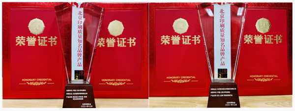 “中华印制大奖推荐产品”暨“北京印刷质量知名品牌提名产品”奖杯及证书