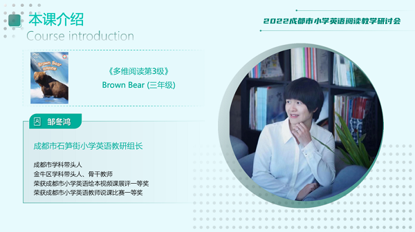成都市教育科学研究院英语教研员,国培项目培训专家,中国英语阅读教育研究院专聘研究员。参与课标教材外研版《英语》(新标准)等教材、教师用书编写工作,著有《小学英语教学设计》,多篇论文发表于全国核心期刊《中小学外语教学与研究》《英语学习》。