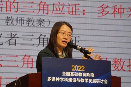 北京市海淀区教育科学研究院吴颍惠院长以“多语种与多元文化理解教育”为题,阐释了在当前多语种教育的时代使命背景下,海淀区中小学多语教育联盟做出的探索和实践。新课标的推出,要求教学改革从知识点的掌握向培养学生核心素养转变,语言教学中要提升学生的跨文化交际能力、国际理解力、思维能力。海淀区多语联盟助力教师专业成长,积极搭建校际交流平台,并通过主题实践活动有效助力外语课堂的提质增效。