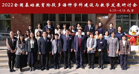 4月15日—16日,“2022全国基础教育阶段多语种学科建设与教学发展研讨会”在北京圆满落幕,研讨会由全国基础外语教育研究培训中心多语种教育发展分中心(后简称“分中心”)、北京市海淀区教育科学研究院共同主办,外语教学与研究出版社、海淀区多语联盟项目学校协办,北京外国语大学附属外国语学校承办。会议采用线上线下相结合的方式进行,来自全国210所中小学、高校和培训机构的360余位领导、专家、多语种学科负责人和一线教师参加会议。