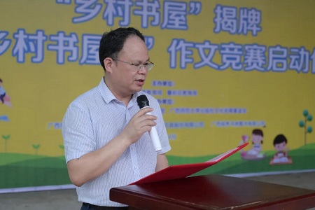 为促进“乡村书屋”文化惠民活动扎实开展,进一步提升城乡居民素养,在桂林市城乡形成全民阅读的浓厚氛围,凝聚乡村振兴文化软实力,4月28日上午,由桂林市教育局、叠彩区教育局主办,桂林银行桂林分行、广西期刊传媒集团、广西师范大学出版社文化发展基金会承办的“乡村书屋”揭牌仪式暨“乡村书屋杯”作文竞赛启动仪式在桂林市叠彩区大河乡上阳家村举行。桂林市委教育工委委员、市教育局党组成员、副局长文泽鸿,广西师范大学出版社集团党委书记、董事长黄轩庄,桂林银行党委委员、副行长兼桂林分行行长范军民,叠彩区副区长蒋闻,桂林市教育局德育科科长巫自识,叠彩区教育局局长吴海云等领导嘉宾出席了本次活动。