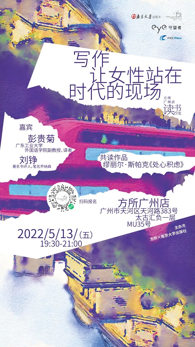 合作品牌:天英汇 1981年,苏格兰知名作家缪丽尔·斯帕克出版了她的第十六部小说《处心积虑》,书广受好评,让斯帕克第三次入围布克奖短名单。这本探讨小说艺术的元小说,以毫不多愁善感的叙事,以及完全和传统女性美德挂不上钩的人物设计,讲述了二十世纪独立文学女性的伦敦奇遇。斯帕克塑造的女作家芙蕾尔与伍尔夫的理想遥相呼应。芙蕾尔不止一次感叹:作为一位艺术家、一名女性,生活在二十世纪,感觉真好! 5月13日晚上,方所广州店读书沙龙邀请到《处心积虑》的译者彭贵菊老师,以及著名书评人刘铮,来与我们分享这本由女作家书写的关于女作家的小说。“女人要想写小说,必须有钱,再加一间自己的房间”?“女作家”是否有其特殊性?“女作家”这一提法本身是否就隐含性别不平等的意味?女性写作的最佳状态是忘记自己的性别,还是突出女性意识?如何看待女性写作的历史和现状?