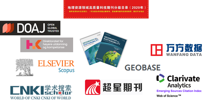 近日,《地理学与可持续性(英文)》期刊编辑部收到通知,期刊被中国科学引文数据库(Chinese Science Citation Database, 简称CSCD)和Engineering Village-GEOBASE数据库收录。