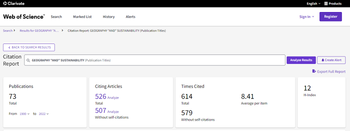 另据Web of Science数据库显示,截至2022年4月19日,GeoSus已经发表的73篇文章中,被引次数共计614次,篇均引用8.41次,表现了良好的发展态势。