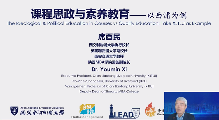 教育部工商管理类专业教指委主任委员、西交利物浦大学执行校长席酉民教授作了题为“课程思政与素养教育”的主题报告,从教育的本质出发,深入分析了工商管理类课程思政建设的育人定位与路径,结合西交利物浦大学的实践分享了新时代以育人为核心的教学改革。