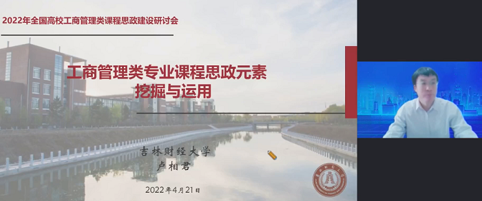 教育部工商管理类专业教指委委员、吉林财经大学研究生院院长卢相君教授基于“工商管理类专业课程思政元素挖掘与运用”的主题,分享了对于工商管理类专业课程思政的建设依据、元素体系、挖掘思路、教学方法的看法,并结合专业课程系统阐述了课程思政元素的挖掘与运用。
