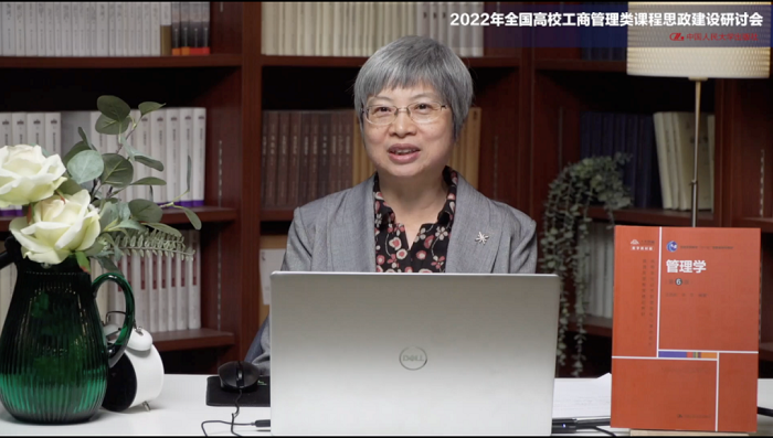 为深入实施《高等学校课程思政建设指导纲要》,推进高校工商管理类各专业课程思政建设,2022年4月21—22日,在教育部高等学校工商管理类专业教学指导委员会指导下,中国人民大学出版社成功举办“2022年全国高校工商管理类课程思政建设研讨会”(线上)。十位教指委委员和专家学者在会上做了主题讲座和经验分享,有来自全国31个省(自治区、直辖市)140多所院校近300位老师参加了本次研讨会。