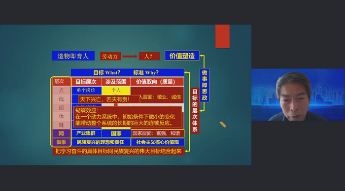 教育部工商管理类专业教指委委员、北京化工大学副校长雷涯邻教授以“工商管理类课程思政教学纵横体系构建”为题,深入分析了工商管理类课程思政的目标任务是什么、如何实现、难点如何解决等问题,并详细介绍了北京化工大学“三环相扣”“五位一体”的实施体系和保障体系。