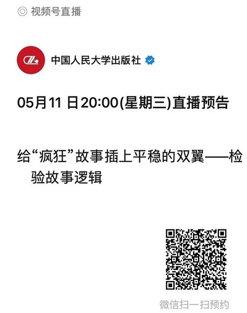 人大社•创意写作坊——写作公开课系列直播揭秘如何检验故事逻辑给“疯狂”故事插上平稳的双翼