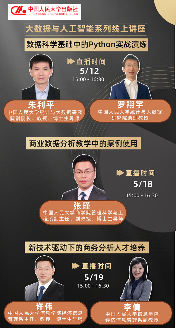 邀请主讲专家均为中国人民大学相关学院资深教师,旨在与全国各高校相关专业教师共同探讨交叉学科以及新工科相关专题。