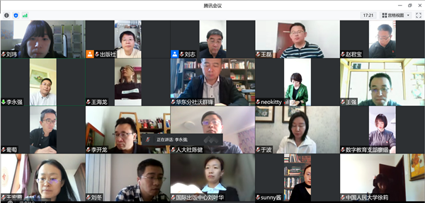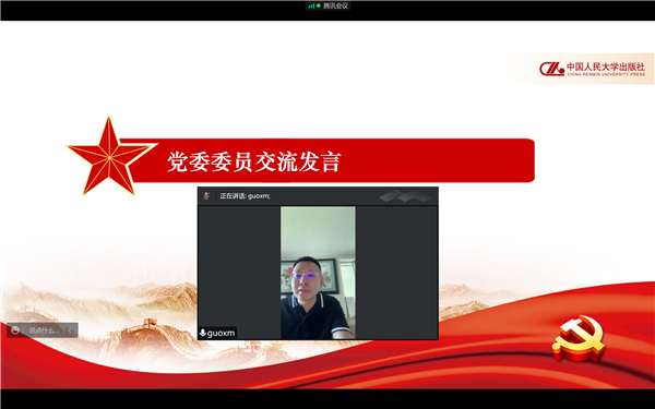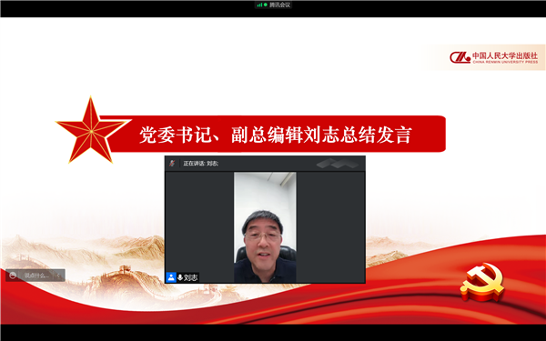 5月13日上午,为充分认识习近平总书记在学校考察时重要讲话精神的重大理论价值和实践指导意义,更好地把准内涵要义、吃透精神实质,根据学校党委统一部署,并按照疫情防控的有关要求,出版社党委以在线会议的方式开展了“传播中国声音、中国理论、中国思想”主题研学活动。会议由党委书记、副总编辑刘志主持,出版社全体党委委员、党支部书记和负责主题出版、国际出版和数字出版“走出去”业务的相关负责同志参加了研学。