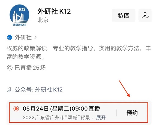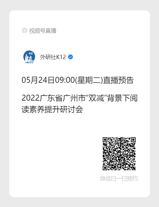 扫描下方二维码,关注“外研社K12”视频号,预约该场直播,届时即可观看。