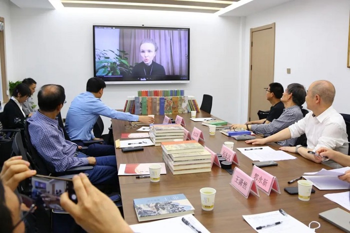 5月21日,陕西师范大学出版总社举办俄文版“诗说中国”丛书出版线上线下交流会,丛书主编薛保勤、李浩及张志春、刘炜评、储兆文、王潇然、刘蟾等作者出席了会议,俄文译者代表、丛书责编达奇娅娜·弗拉基米拉夫娜也以视频的方式参加了交流会。
