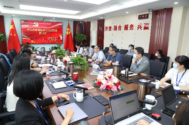 国家开放大学出版传媒集团党总支全体党员、各业务部门(项目组)相关人员,经济管理教学部党支部全体党员,以线下和线上相结合的方式参加了本次活动。活动由国家开放大学出版传媒集团党总支书记冯立国同志主持。