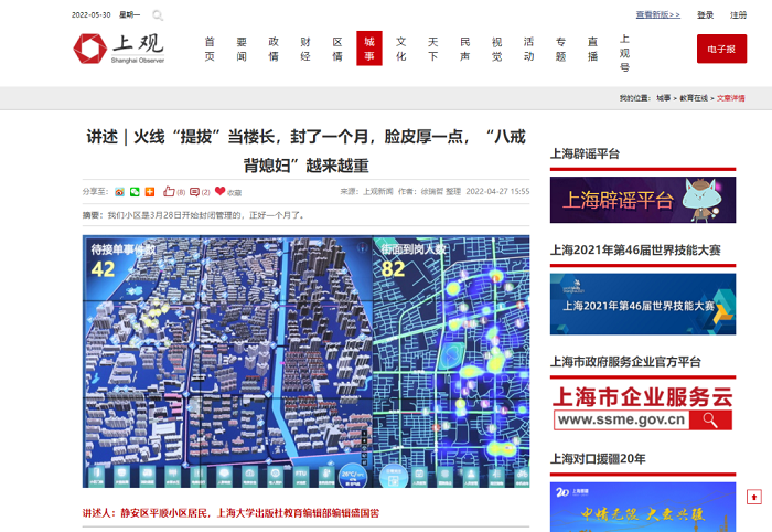 图注:“上观”新闻报道上海大学出版社盛国喾老师的抗疫故事