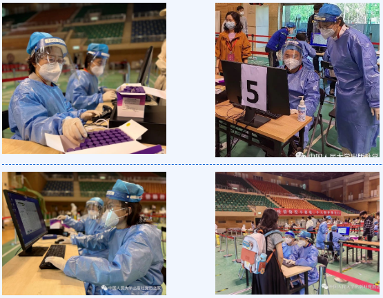 4月底,学校党委在各单位招募党员志愿者,中国人民大学出版社6名党员和入党积极分子踊跃报名参加,并迅速加入人大应急核酸采样志愿服务队。六名党员牺牲了五一假期,投身学校核酸检测现场身份核验工作,协助医务人员和现场工作人员进行了信息录入、试剂分发、人员引导等工作,累计完成7次共26小时的志愿服务。5月4日下午,正值五一假期中,学校再次紧急招募第二天核酸采样志愿者,中国人民大学出版社党委副书记、纪委书记刘玮第一时间报名,也加入到志愿者队伍中。