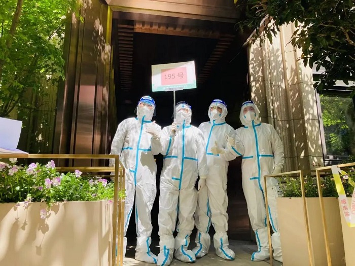 疫情无情人有情。疫情爆发初期,外教社党委动员全体党员落实“双报到”,积极投身抗疫一线,勇担使命,冲锋在前,共同守护这座我们深爱的城市。在这些先锋力量的感召下,近百名外教社人参与到社区志愿服务中,成为疫情防控的有生力量。在维护核酸检测秩序、发放抗原检测盒与结果反馈、分发配送保供物资等生活必需品、外出为居民们配药、担任“团长”组织社区团购、协助消杀社区公共区域等工作中,处处可见外教社人的身影,传递着的正是外教社积极向上的企业精神——勇于担当,主动作为,弘扬正能量,传递爱与温暖。