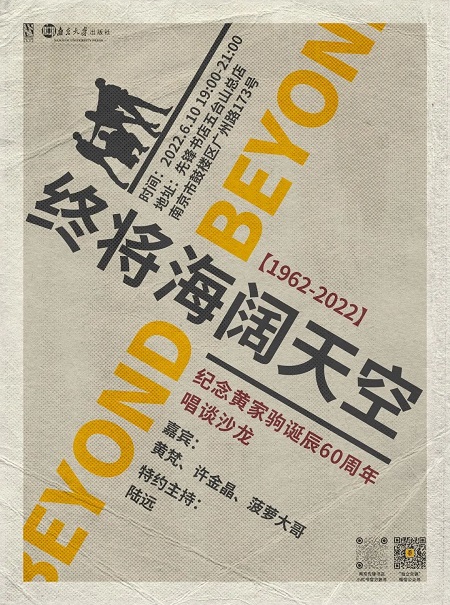 6月10日是黄家驹诞辰六十周年纪念日,南京大学出版社将在这个晚上举办以Beyond音乐陪伴下的17个人生故事为主题的《海阔天空》一书的全国首发式暨唱谈沙龙。