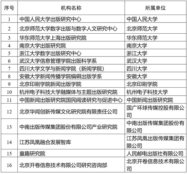 近日,国家新闻出版署公布2022年度出版智库遴选培育机构名单,中国人民大学出版社成立的中国人民大学出版研究中心入选。