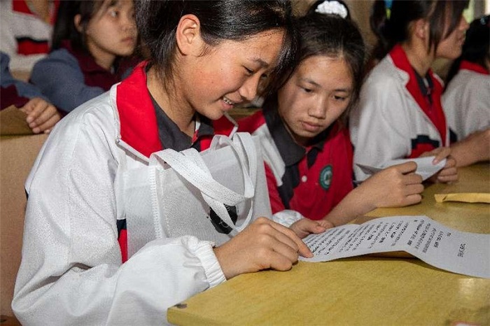 独秀班学生阅读集团公司结对子员工的来信(黄珊虎 摄)