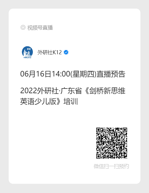 扫描下方二维码,关注“外研社K12”视频号,预约该场直播,届时即可观看。