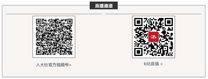 人大社官方视频号、b站直播,欢迎预约↑ 识别二维码预约 ↑6月17日(晚)19:00