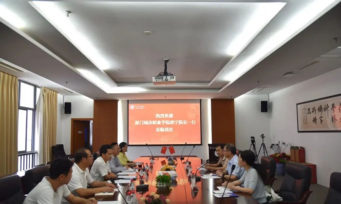 6月14日下午,厦门城市职业学院院长唐宁、副院长吴松青、教务处处长戴力芳一行莅临厦大社交流座谈,厦大社社长郑文礼、总编辑施高翔、副社长欧光江及有关中层干部参加。