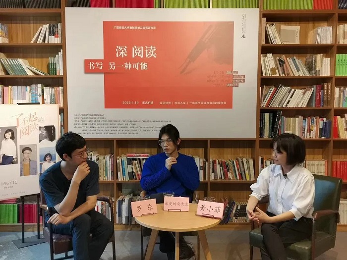 6月19日上午,“深阅读·书写另一种可能”广西师范大学出版社第二届书评大赛开场活动“了不起的阅读”文化对谈在桂林独秀书房·旗舰店拉开帷幕。当下最具影响力的读书博主之一都靓、新京报书评周刊编辑罗东与抖音头部知识博主亲爱的安先生等嘉宾在线上就“深阅读的意义”“如何拓宽阅读的边界”“如何进行视频书评创作”等话题进行了深入探讨,并就后疫情下的阅读与书写进行了多角度的对话,在线上线下引发热烈反响。