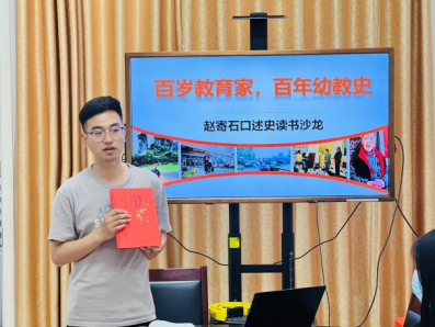 幼儿园贾奔奔老师分享了该书在访谈、整理、撰写、影像口述过程中的经历,特别是唐淑、陈国强等老一辈学前人不畏艰辛、坚韧不拔的课程研究历程和严谨务实的治学态度,以及口述团队师生在采访过程中所引起的情感共鸣。