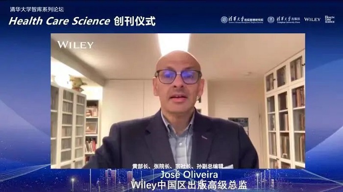 José Oliveira对Health Care Science创刊表达诚挚的祝贺。他指出,在Wiley诞生的两个多世纪历史中,长期、持久和战略性的合作伙伴关系一直是Wiley工作的核心,很荣幸与清华大学医院管理研究院、清华大学出版社紧密合作。Wiley将为Health Care Science提供国际领先的专业出版服务,助力向世界展示高质量的研究成果。