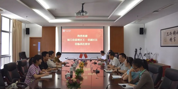 2022年7月1日下午,厦门市思明区王一青副区长、政府办谢晖副主任,思明区文旅局文体科陈明浩科长,滨海街道经服办吴冬玲主任等莅临厦门大学出版社调研指导。厦门大学出版社社长郑文礼、副总编辑陈进才及部分中层干部参加调研座谈。