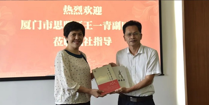 座谈会后,郑社长代表厦门大学出版社向王副区长一行赠送由厦门大学出版社出版的《为吾国放一异彩——厦门大学与伟大祖国》《陈嘉庚传》。