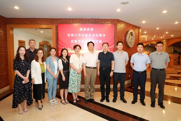 2022年7月12日,吉林大学出版社党委书记张晓萌、社长金江红一行四人来外研社调研出版及经营管理情况。