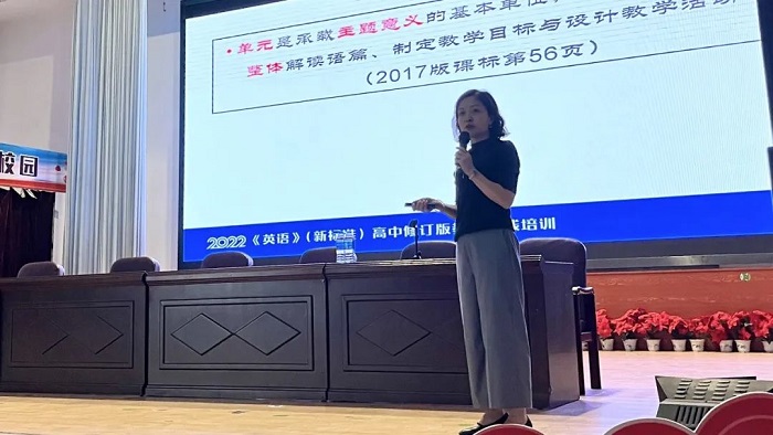 隋人珠从新课标修订的主要内容和变化出发,以教材必修第一册的单元内容为例,进行了基于主题意义探究的单元整体教学指导,提出了具体的实施建议。她强调,教师要提高大观念视角下的单元整体教学水平,深入思考,巧妙设计,积极实践,实现英语课堂的个性化、过程化、应用化。