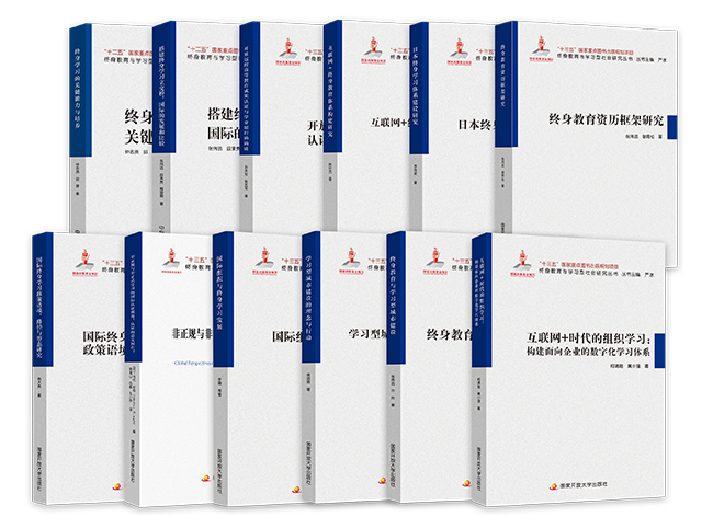 “终身教育与学习型社会研究丛书”由国家开放大学出版传媒集团组织策划、集团下属国家开放大学出版社承担出版,于2014年入选“十二五”国家重点图书出版规划,2017年入选“十三五”国家重点图书出版规划,2020年获得国家出版基金资助并于当年结项。丛书从构建中国特色终身教育体系这一我国教育现代化重大战略任务的诸多关键因素切入,探索各级各类教育的开放及其衔接与贯通,推动优质教育资源共享,实现社会软实力提升、教育各阶段协同发展、组织整体创新能力提高、个体增权赋能的目标。