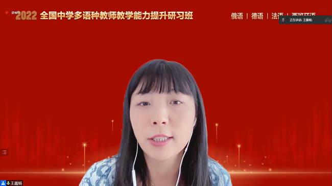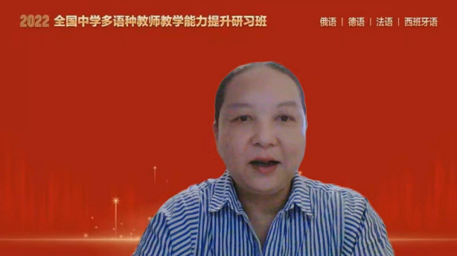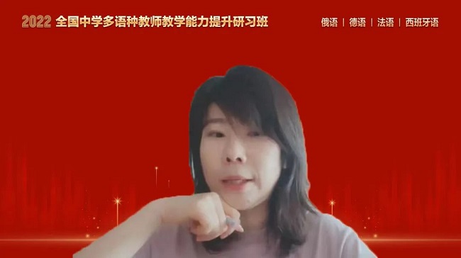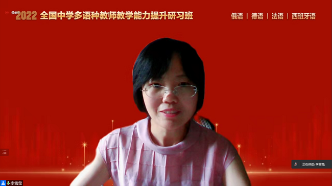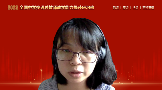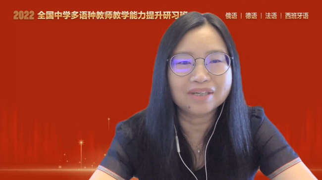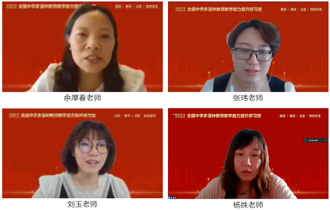 本次研习班邀请了四川外国语大学附属外国语学校的余厚春老师、宁波市第三中学的张玮老师、天津外国语大学附属外国语学校的刘玉老师和济南外国语学校的杨姝老师分别为俄语、德语、法语和西班牙语中学教师分享教学经验。
