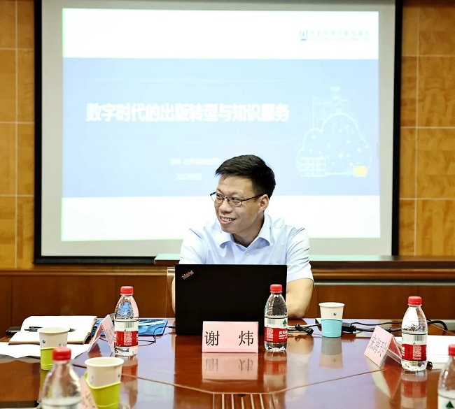 谢炜副社长从数字时代学术研究的新趋势、人文社科学术出版的现状、数字时代学术出版的新定位、学术出版知识服务体系的构建、学者服务平台的搭建以及数字时代学术出版的知识服务转型实践与未来的展望等多个维度分享了经验与心得,并就新时代编辑转型、学术出版物数字化实操等与大家进行了交流。