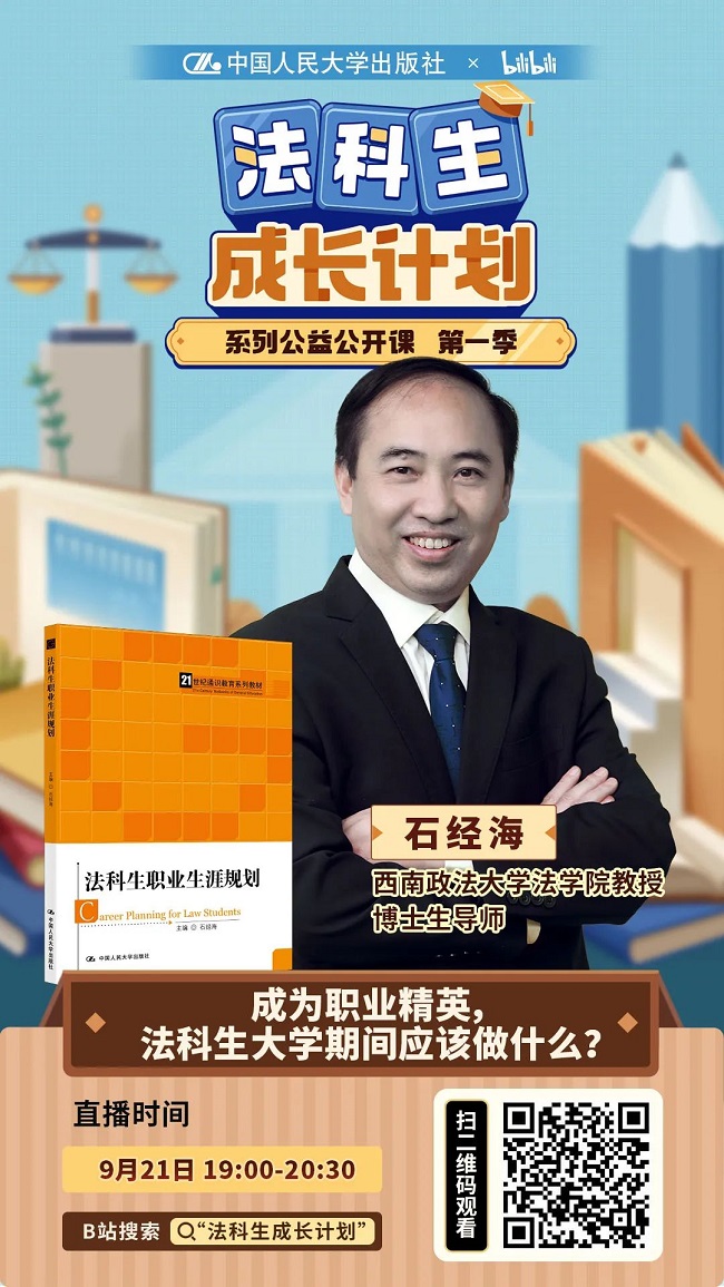 作为全国首屈一指的大学教育出版机构,中国人民大学出版社携手全国重点法学院校著名专家学者,倾力打造“法科生成长计划”系列公益公开课。针对法科生在各个阶段所面临的难题,寻找最合适的导师“传道、授业、解惑”,伴随法科学子一路成长。