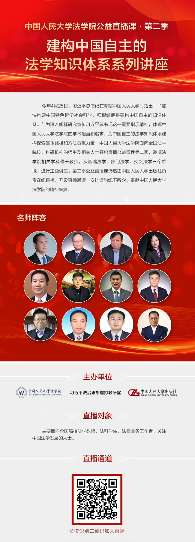 本次直播由中国人民大学法学院主办
