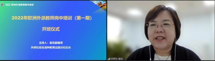 2022年10月15日下午,由中外语言交流合作中心资助,北京外国语大学主办,北京外国语大学孔子学院工作处和外语教学与研究出版社承办的2022年欧洲外派教师岗中培训项目(第一期)顺利开班。北京外国语大学孔子学院工作处处长金利民出席开班仪式并致辞。开班仪式由综合语种教育出版分社社长崔岚主持。