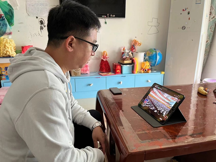 王兴业老师之前摔伤一直卧床,他的老伴儿接通电话,老太太骄傲的说,封控前刚刚买了十斤鸡蛋,家里物资充足。因为自己的关节不好,所以学会了网购,衣食住行自己上网都可以搞定,一个人照顾着卧病在床的老伴儿的换洗,不给子女添麻烦。她自豪的说:“我现在可是家里的顶梁柱”。我听得她精神状态很好,又有些感慨,她面对疫情,面对独自照顾伴侣没有丝毫抱怨,元气满满的状态也感染着我。
