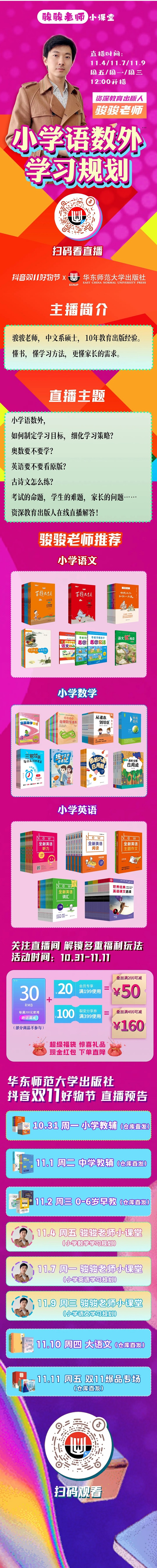 华东师范大学出版社直播预告|骏骏老师小课堂:小学语数外学习规划(10.31-11.11) - 出版动态 - 中国高校教材图书网