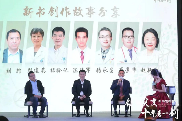 发布会现场,主创团队杨衿记教授、陈华军教授、周建英教授、周建娅教授、赵艳秋教授、刘喆教授、李斌教授、张永昌教授、崔景华教授等,为我们分享了该书记录的精彩故事。得益于肺癌驱动基因理论和精准治疗的突飞猛进,越来越多的驱动基因阳性晚期肺癌患者带瘤生存超过5年,其中有部分已长达10年。这个时代的医生也赶上了肺癌治疗方法发展的黄金时期,肺癌个体化治疗与抗肿瘤新药研发取得突破性进展;临床医师开展了ALK或ROS1融合基因阳性肺癌方向的转化研究。所以,该书的发布可以说巧逢其时,实现了将晚期肺癌变成“慢性病”的梦想。