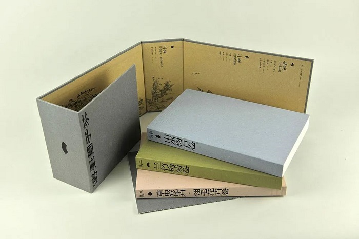 评语:这是一套经典的绘画秘笈。通过字体、图形、色彩的有机融合赋予了老书时代新意。《芥子园画传》分三集呈现,木板摹刻五色套印,以方胜、扇面、窗花符号化图案贯穿始终。封面字体是现代和宋代雕版字的有机结合,与书的内容相得益彰。整体设计均以基础的墨色呈现,各谱之间通过章法解构,花窗漏影、借景成画,传承造境之美。