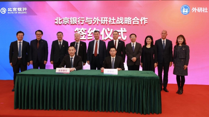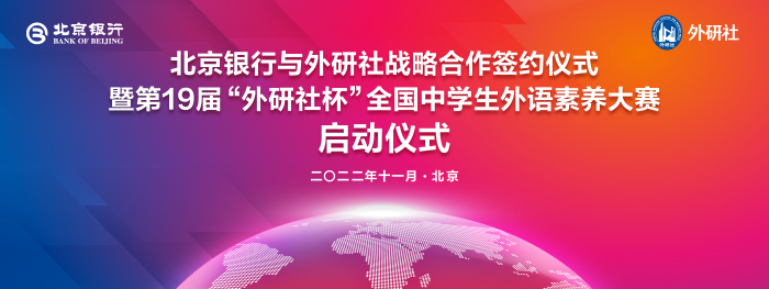 2022年11月11日,外研社与北京银行战略合作签约仪式暨第19届“外研社杯”全国中学生外语素养大赛启动仪式在北京举行。北京外国语大学党委副书记、校长杨丹,北京银行党委书记、董事长霍学文出席并致辞。